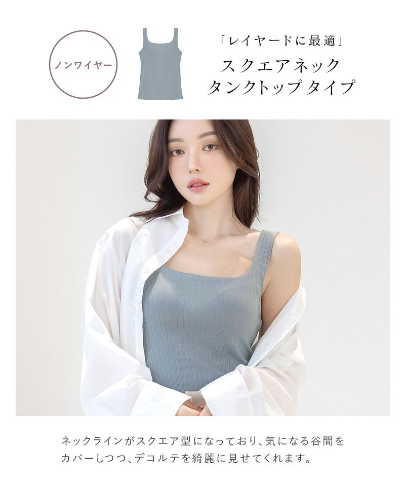 《ナチュ盛りtype》「ブラモネ」スクエアネックタンクトップ ノンワイヤー
