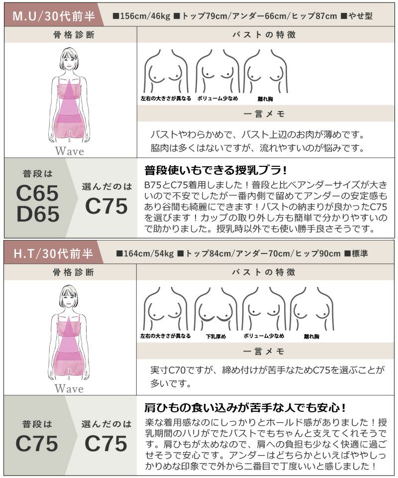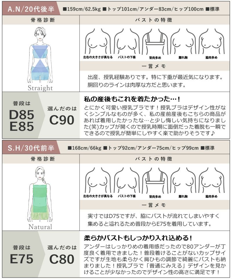B75 B80 B85 B90 C75 C80 C85 C90 ※こちらの商品はアンダーしっかりめとなります。 下記の目安サイズをご参考ください。