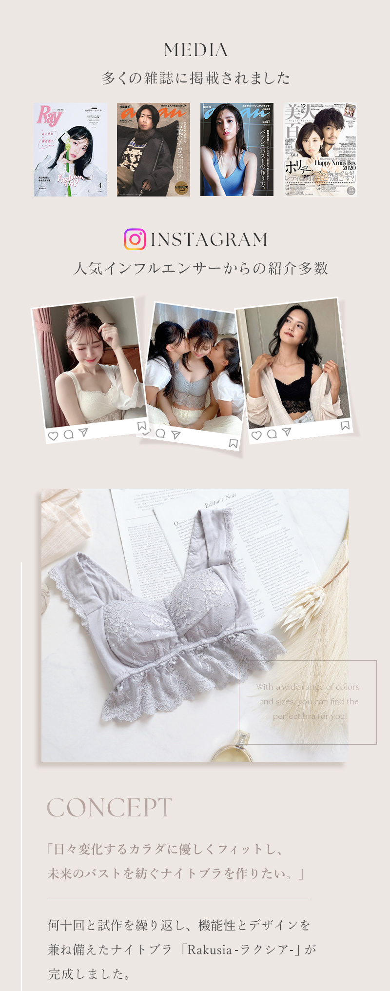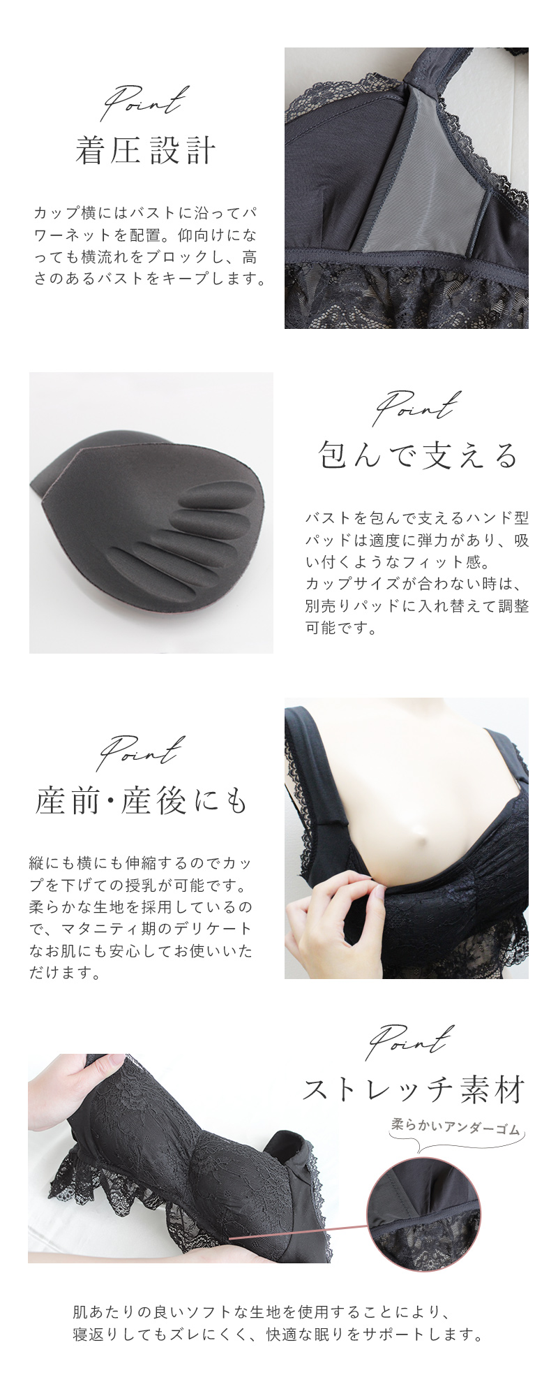ストラップ取り外し:不可 ストラップ長さ調節:不可 パッド:有 パッド取り外し:可 ワイヤー:無 ホック:3段3列 素材:レーヨン、ナイロン、ポリウレタン、その他 ※生産時期により素材が異なる場合がございます。 ナイトブラ2枚セット福袋