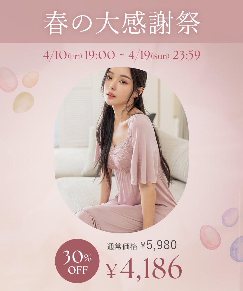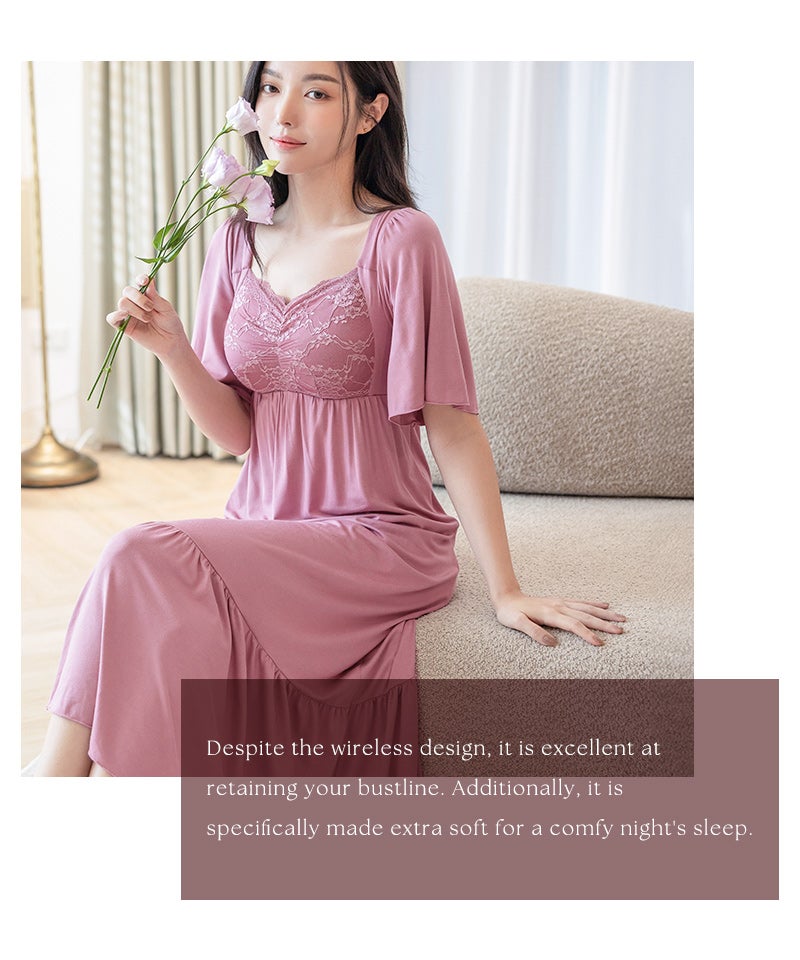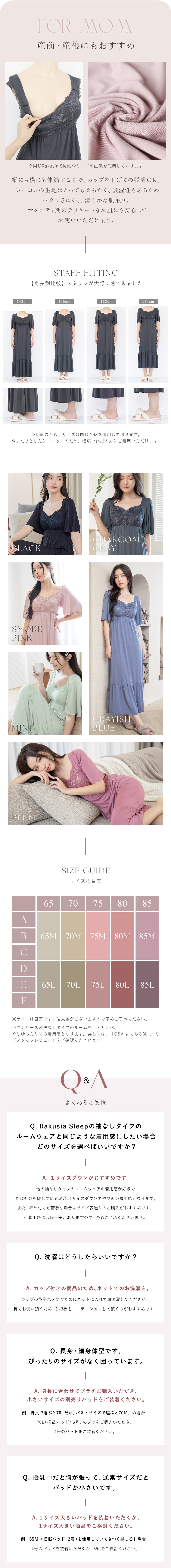 【春の大感謝祭限定 30%OFF】《ラクシアスリープ》ナイトブラワンピース 半袖ロング丈 無地