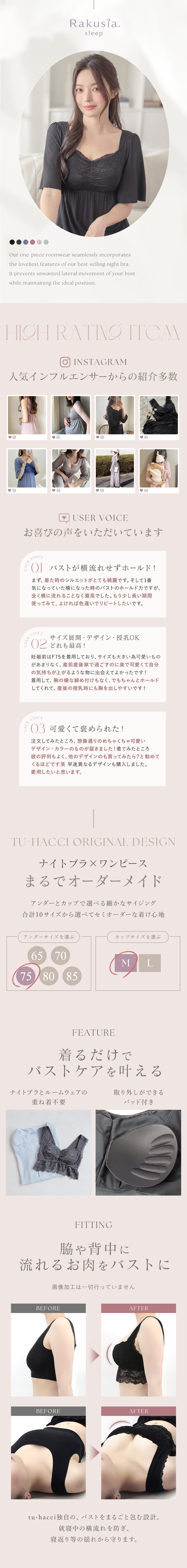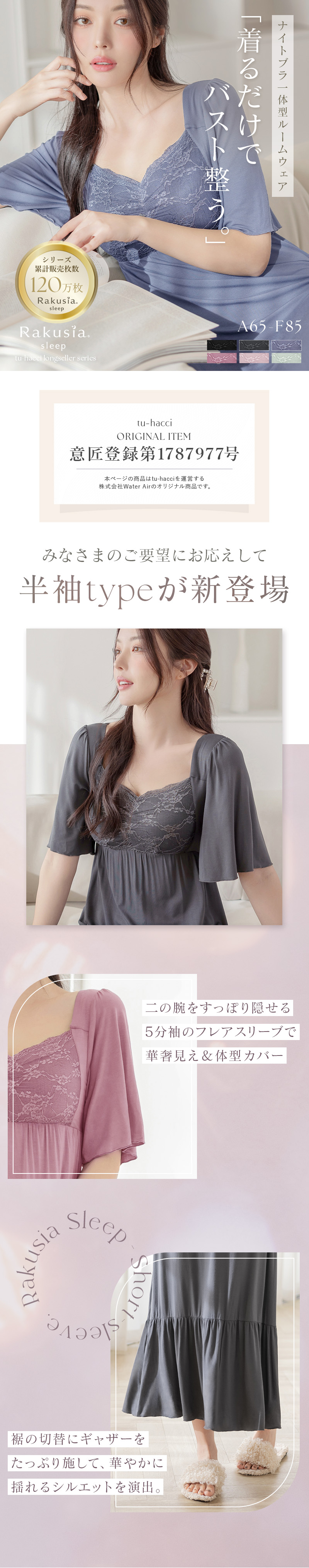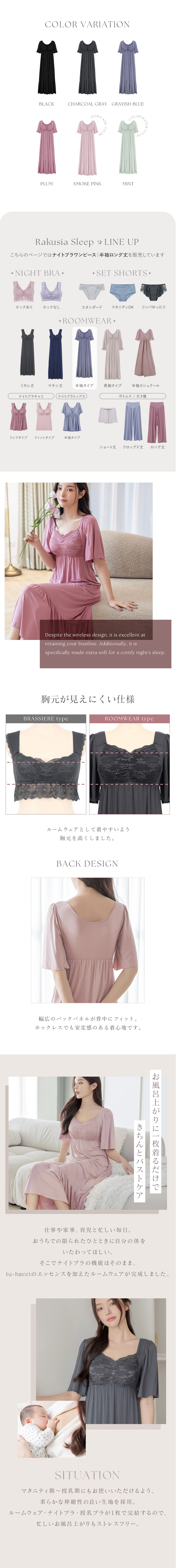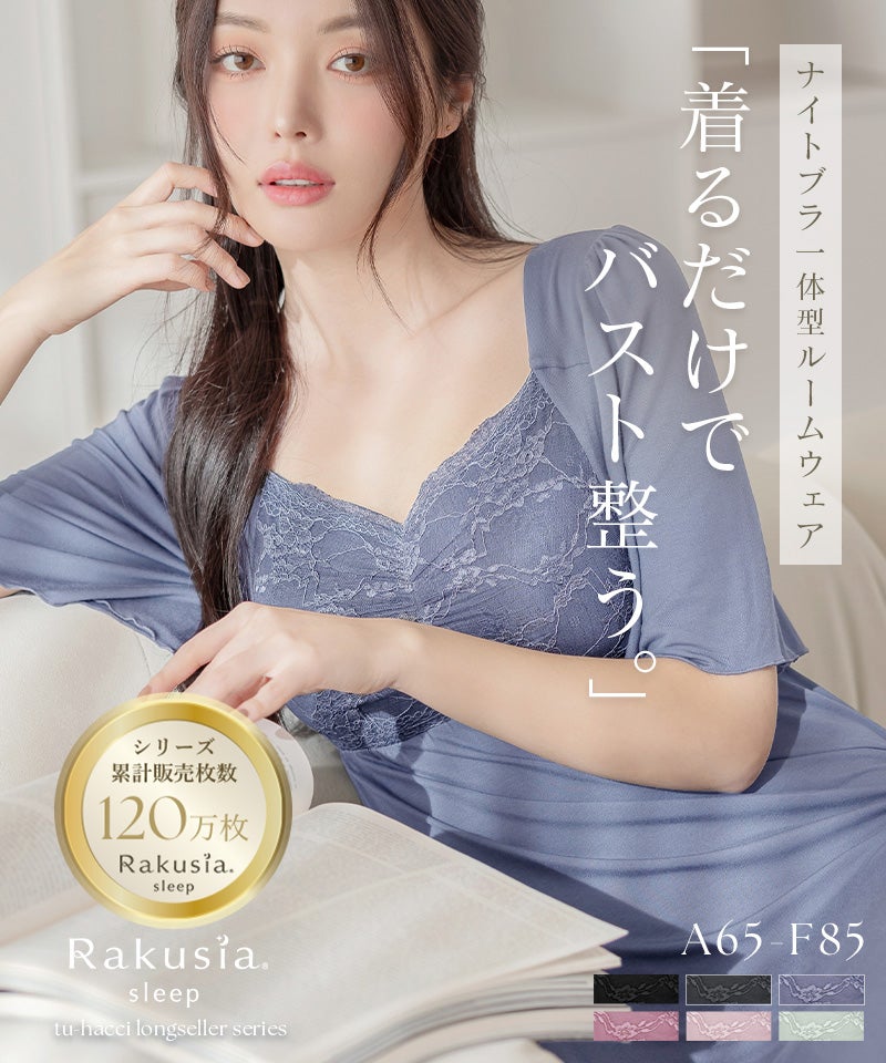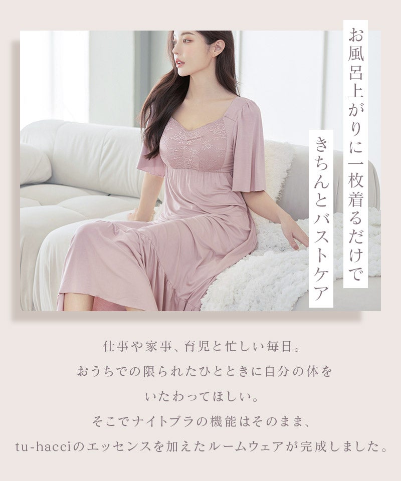 そのtu-hacciの人気No.1ナイトブラ「ラクシアスリープ」を内蔵したワンピース型ルームウェア。