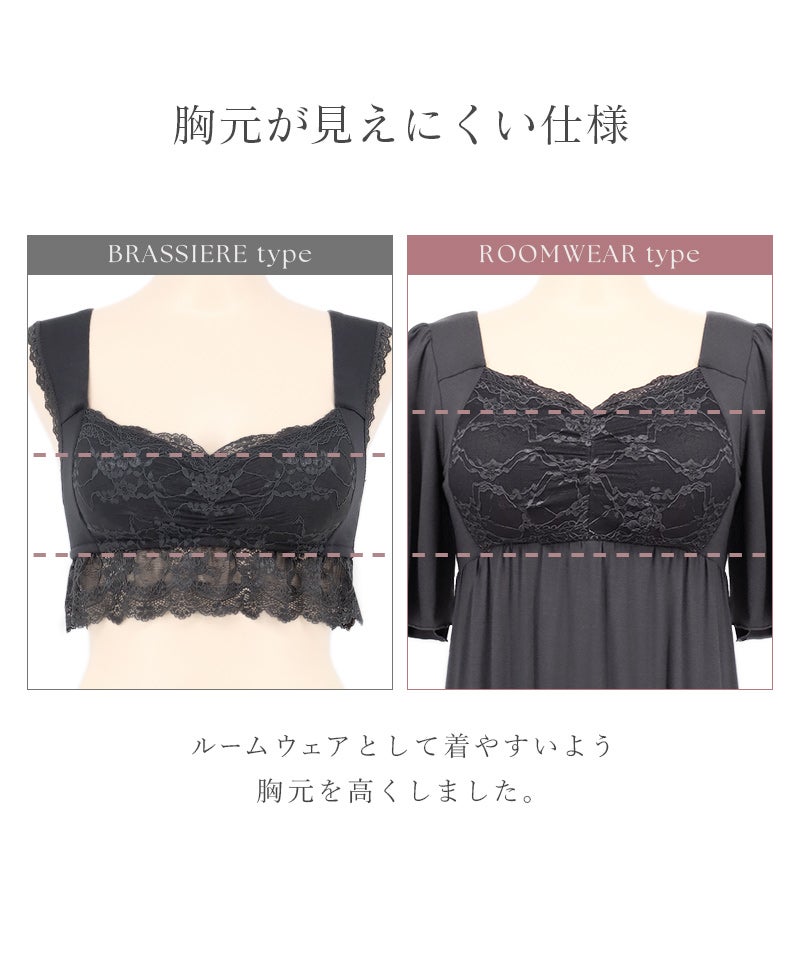 上品なレースデザインはそのままに、胸元を高く谷間が見えにくい仕様に。
