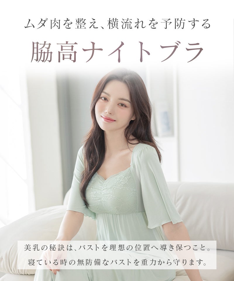 ノンワイヤーでもホールド力が高く、寝ている間も快適でソフトな着け心地にこだわったナイトブラ。
