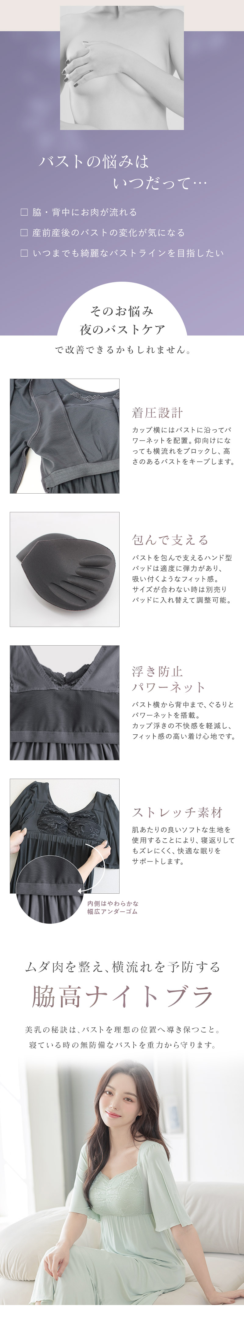 ・ナイトブラ一体型のワンピースなので、これ1枚で24時間バストケアが可能