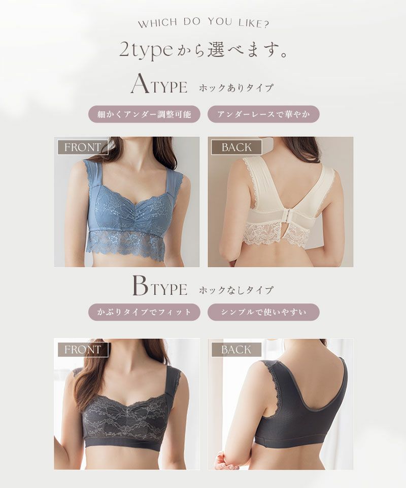 バストの形崩れや横流れが気になる方は、前ホックタイプでしっかり流れやすい脂肪を正しい位置にホールドしてくれるタイプを選ぶと良いでしょう。