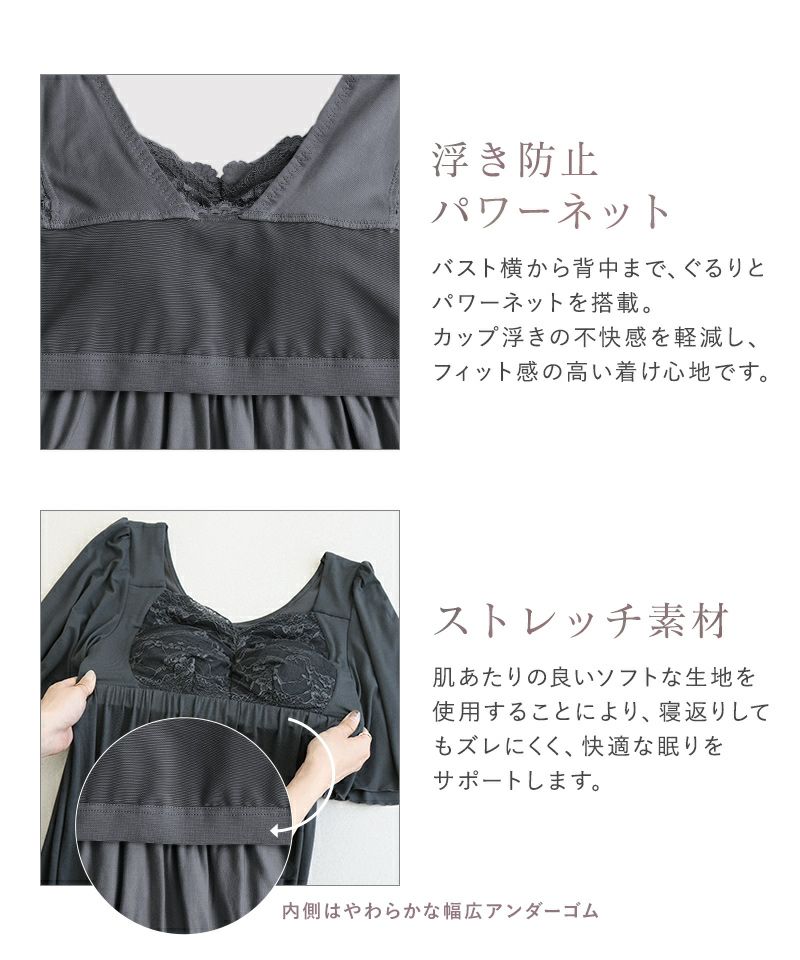 ・キャミ対応で1枚で着たい ・ナイトブラを付け忘れがち ・かわいいルームウェアが欲しい |