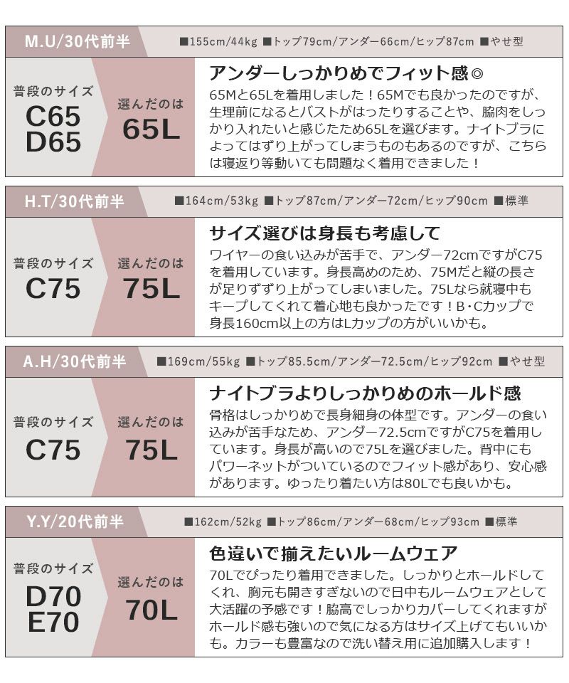 ・肌ざわりにこだわりたい ・楽さと安定感両方が欲しい ・かわいいナイトブラが欲しい |