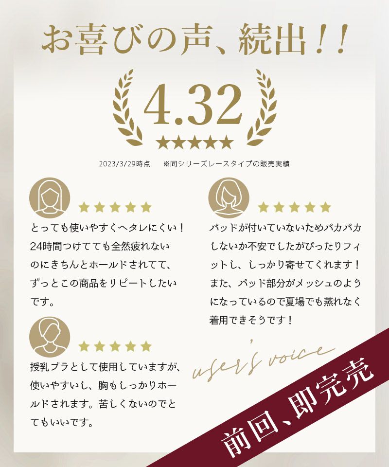 ・デザインにこだわりたい ・授乳に使いたい ・補正力が欲しい |
