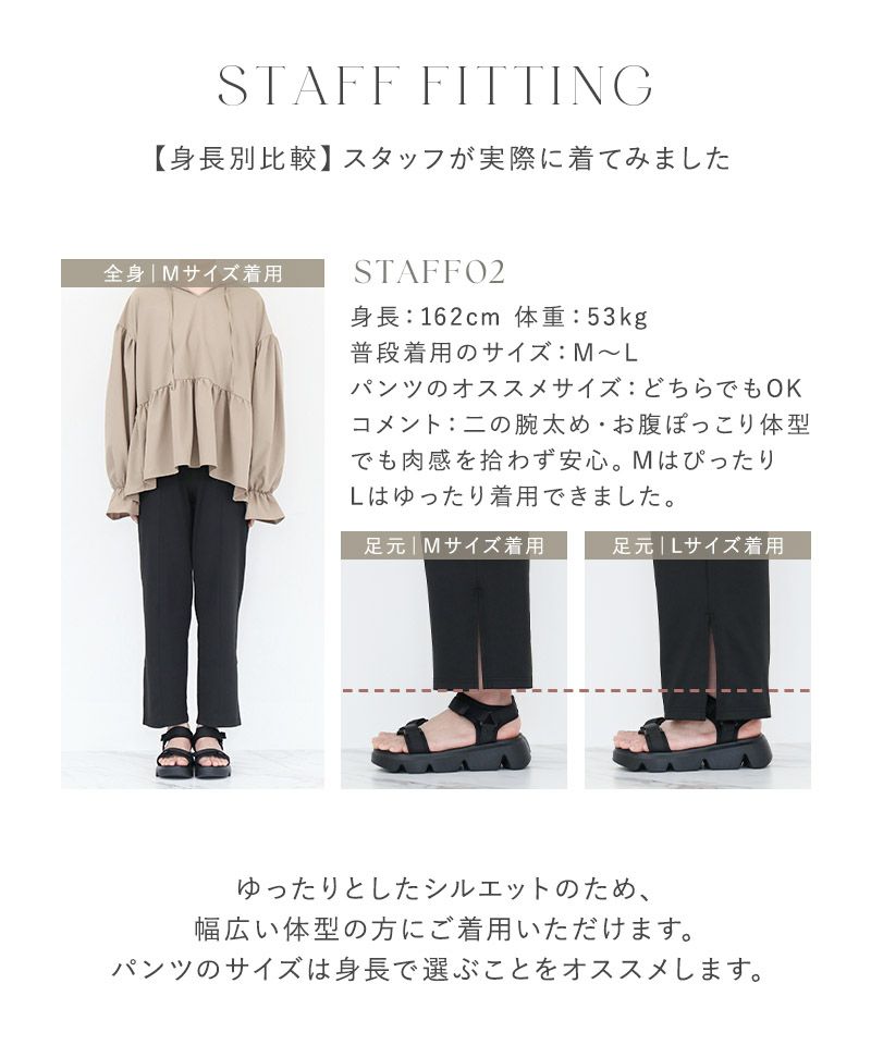 ※平置きサイズはスタッフが採寸した実寸値となり、若干の誤差が生じる場合がございます。 ※対応身長は目安となり、実際の着用感には個人差がございます。