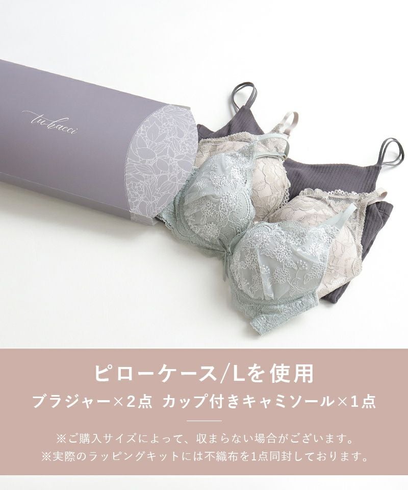 ◇ピローケースM:ショーツ1~2枚程度 ◇ピローケースL:ブラ&ショーツ1~2セット、ブラキャミ1着程度 ◇ショッパーM/長方形:腹巻パンツ3枚程度、ショーツ5枚程度、あったか肌ケアインナー3枚程度 ◇ショッパーL/正方形:P.snowトップス&パンツ1セット、ロングガウン1枚程度、タオルワンピース1枚程度、カーディガン+ナイトブラワンピース、ブラ&ショーツ3セット程度 ※素材やカップの厚さによって前後する場合がございます。 ※P.snowシリーズは「ピローボックスL」に収まりません。ご購入の際はご注意ください。 ※ショッパーはピローケースのサイズに対応しています。 (ショッパーMにはピローケースM、ショッパーLにはピローケースLが入る大きさ)