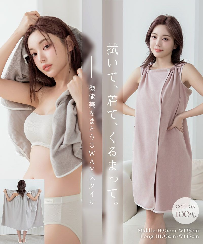3wayラップタオルワンピース【ミドル丈/ロング丈】