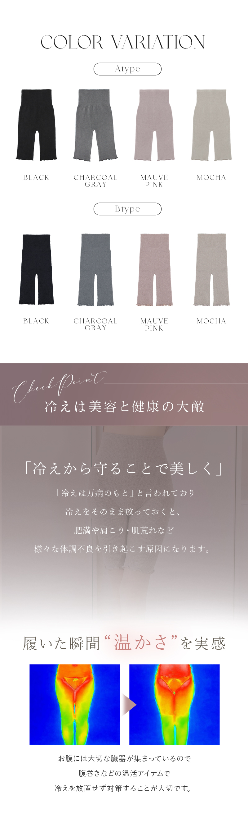 伸縮性の高い生地で締め付けを感じにくく、しっかり温活。