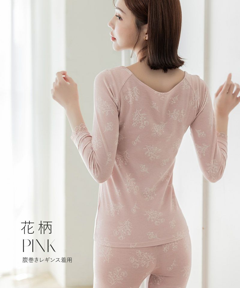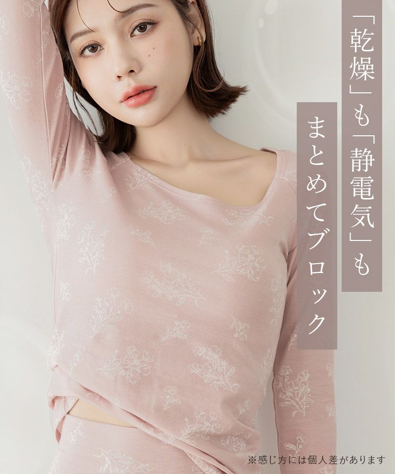 《Urun》潤い仕立てのモイストインナー長袖トップス&パンツセット【腹巻ショーツ/レギンス】