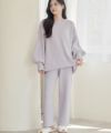 【トップス】 タートルネック 着丈(前):50cm、身幅:62cm、裾幅:62cm、袖丈:51cm、首幅:21.5cm Vネック 着丈(前):55cm、身幅:62cm、裾幅:60cm、袖丈:51cm Uネック 着丈(前):65cm、身幅:62cm、裾幅:60cm、袖丈:51cm 【ロングパンツ】 【M】ウエスト:34cm、着丈:87cm、股下:66cm、裾幅:25cm 【L】ウエスト:34cm、着丈:92cm、股下:70cm、裾幅:26cm ※平置きサイズはスタッフが採寸した実寸値となり、若干の誤差が生じる場合がございます。 ※対応身長は目安となり、実際の着用感には個人差がございます。 ※当商品には伸縮性がございます。