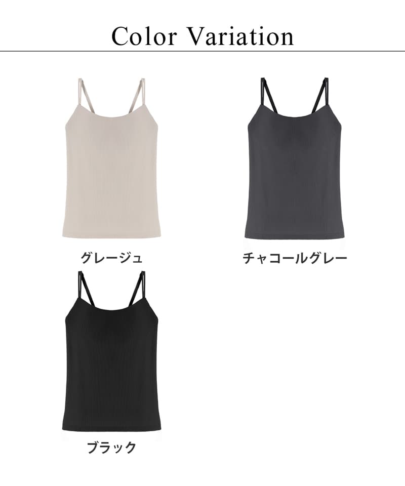 ストラップ取り外し:不可 ストラップ長さ調節:可 パッド取り外し:不可 ワイヤー:なし 素材:ナイロン、ポリウレタン、その他 キャミソール単品