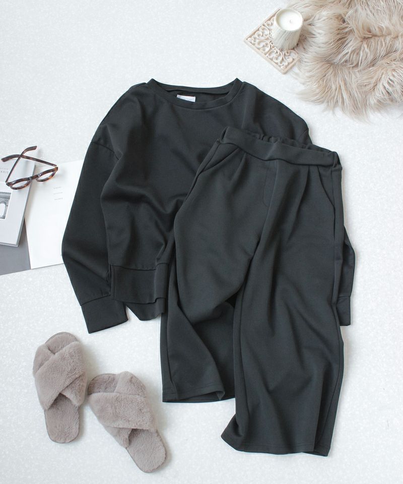 素材:ポリエステル 左右ポケット付き ウエストゴム 伸縮性あり トップス+ガウチョパンツ / 計2点セット