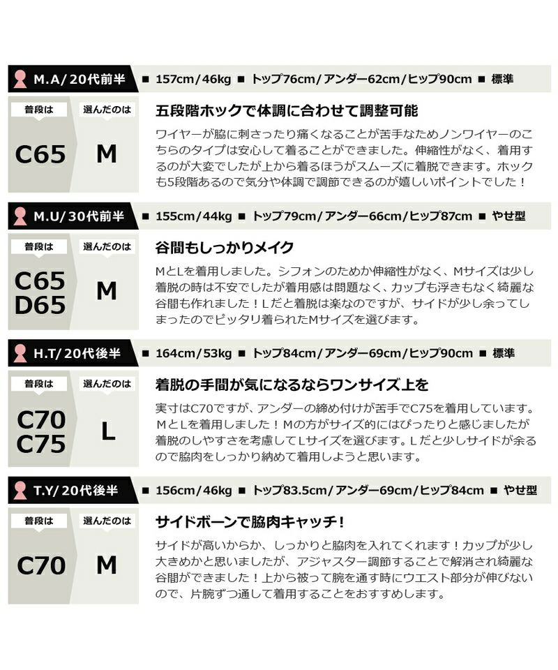 ストラップ取り外し:不可 ストラップ長さ調節:可 パッド:有 パッド取り外し:可 ワイヤー:無 ホック: 2段4列 透け感:パッド部分以外若干あり 素材:ナイロン・ポリエステル・その他 ベビードール単品