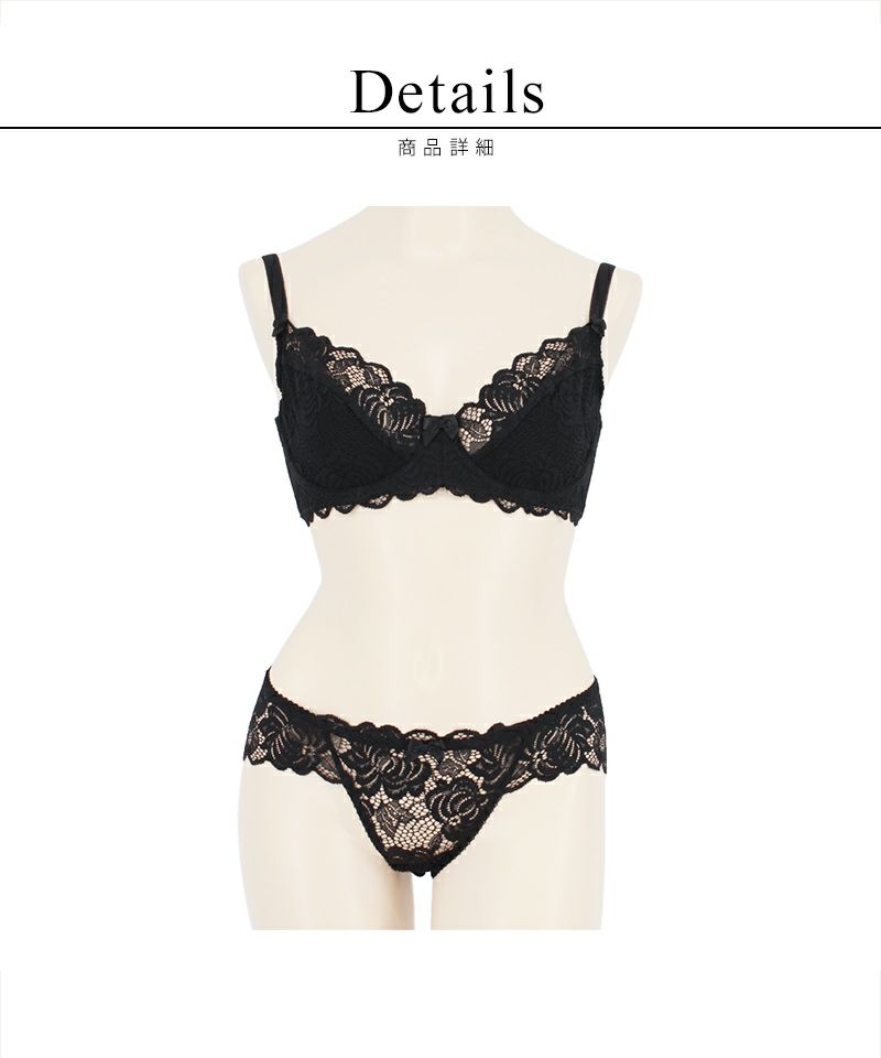 ストラップ取り外し:不可 ストラップ長さ調節:可 ワイヤー:有 パッド:無 ホック:2段3列 素材:ナイロン・スパンデックス・その他 ブラ透け感:若干あり ショーツ透け感:あり ブラ+ショーツ / 計2点セット