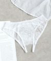 クラシカルなフラワーレースが上品さと華を添えヘルシーな色気を感じさせる一着。