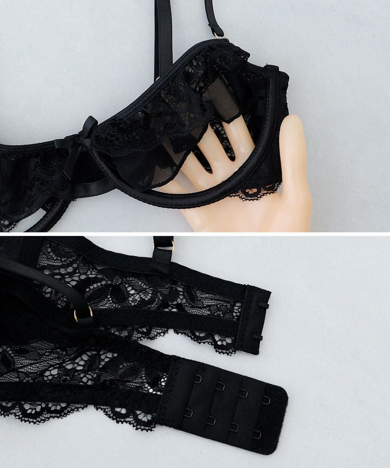 ストラップ取り外し:不可 ストラップ長さ調節:可 パッド:なし パッド取り外し:可 ワイヤー:有 ホック:2段4列 透け感:あり 素材:ナイロン、ポリウレタン
