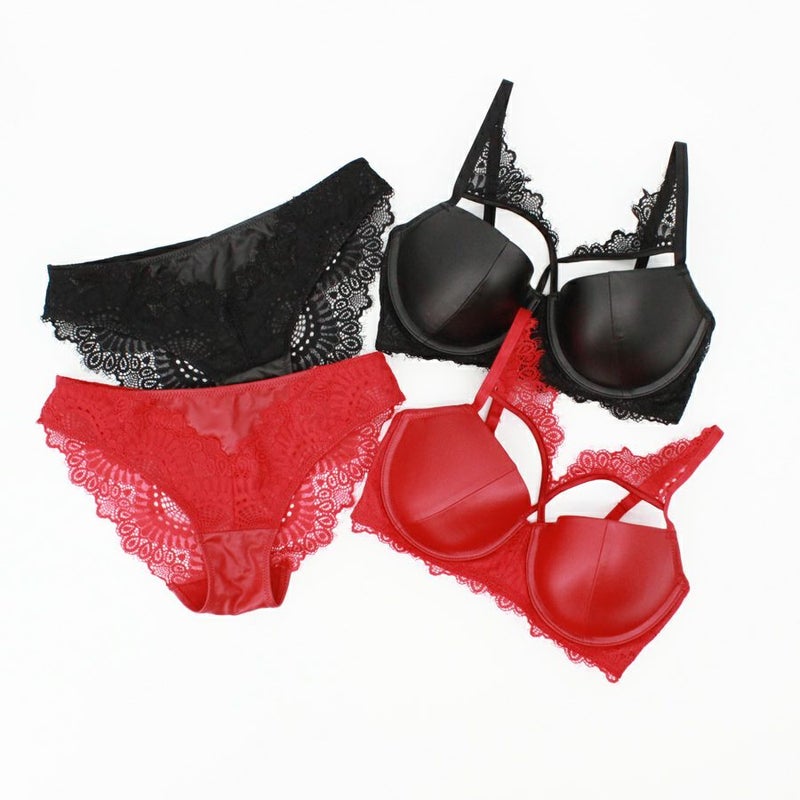 お揃いショーツは、透け感を楽しめるバックレースタイプ。