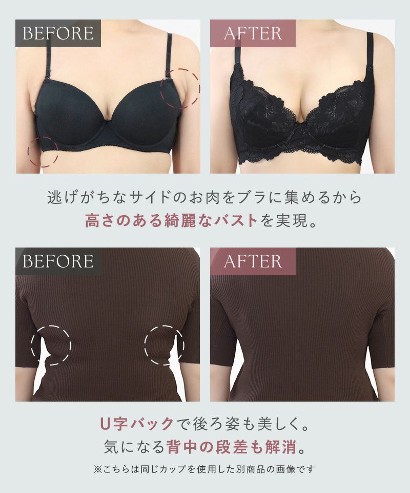 脇高+脇のパワーネットがハミ肉を逃さずキャッチし、バストをスッキリ整える。