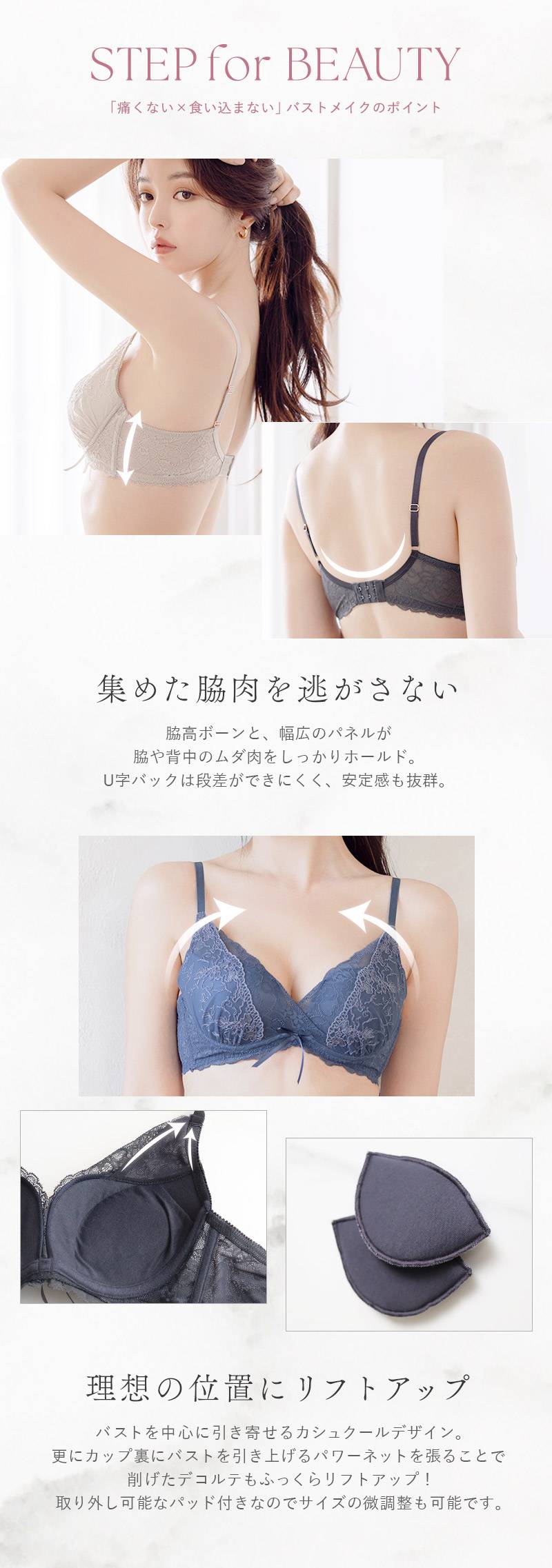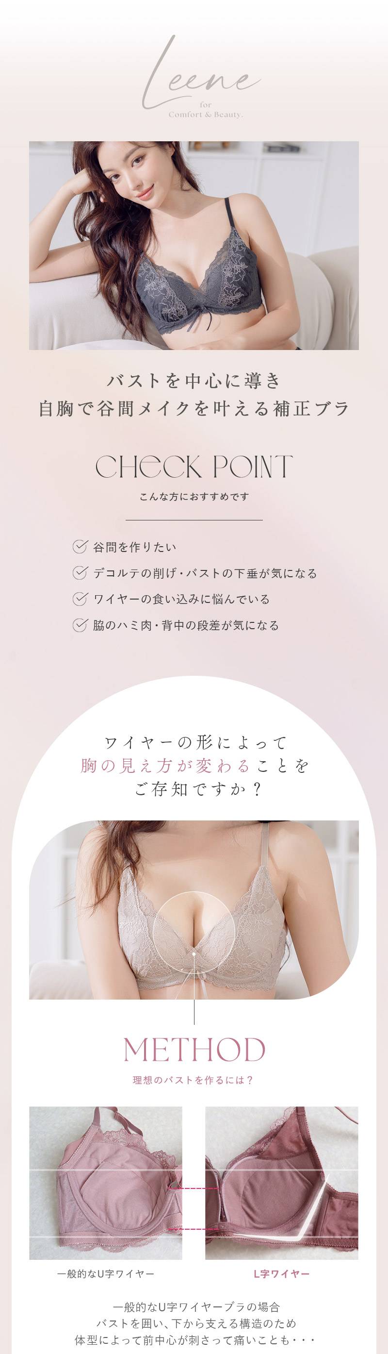 引き上げ効果が持続し、集めた脇肉もセンターへ導き自然で綺麗な谷間をメイクします。