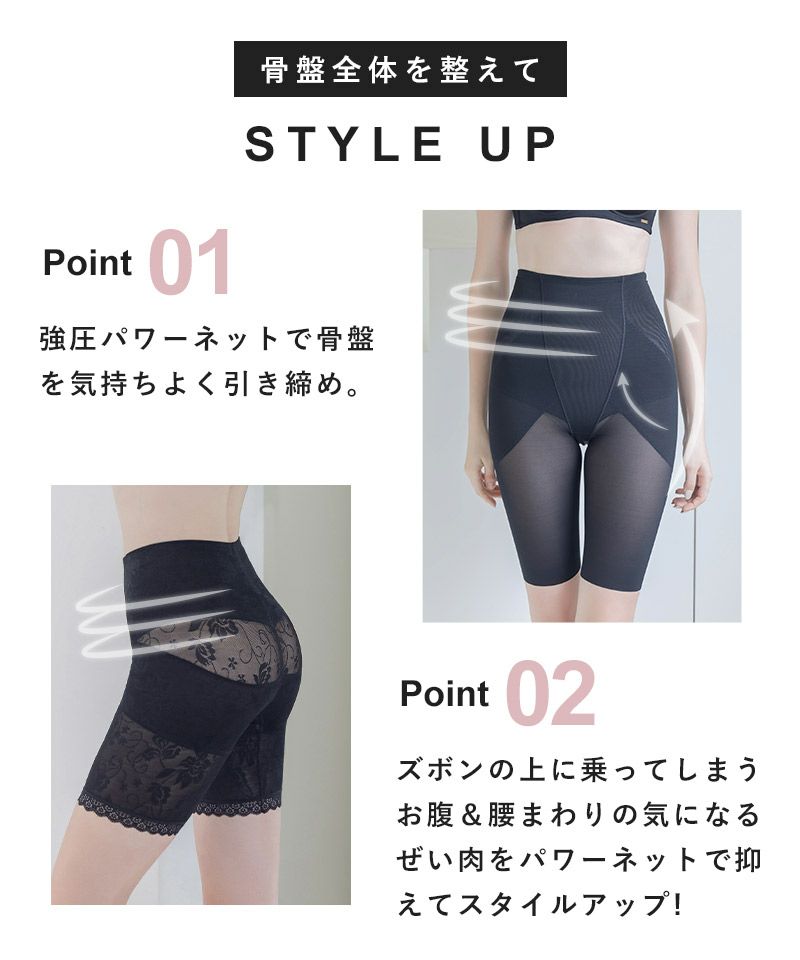 ピオニーレース骨盤ガードルショーツ【ミドル丈/ハイウエスト丈】