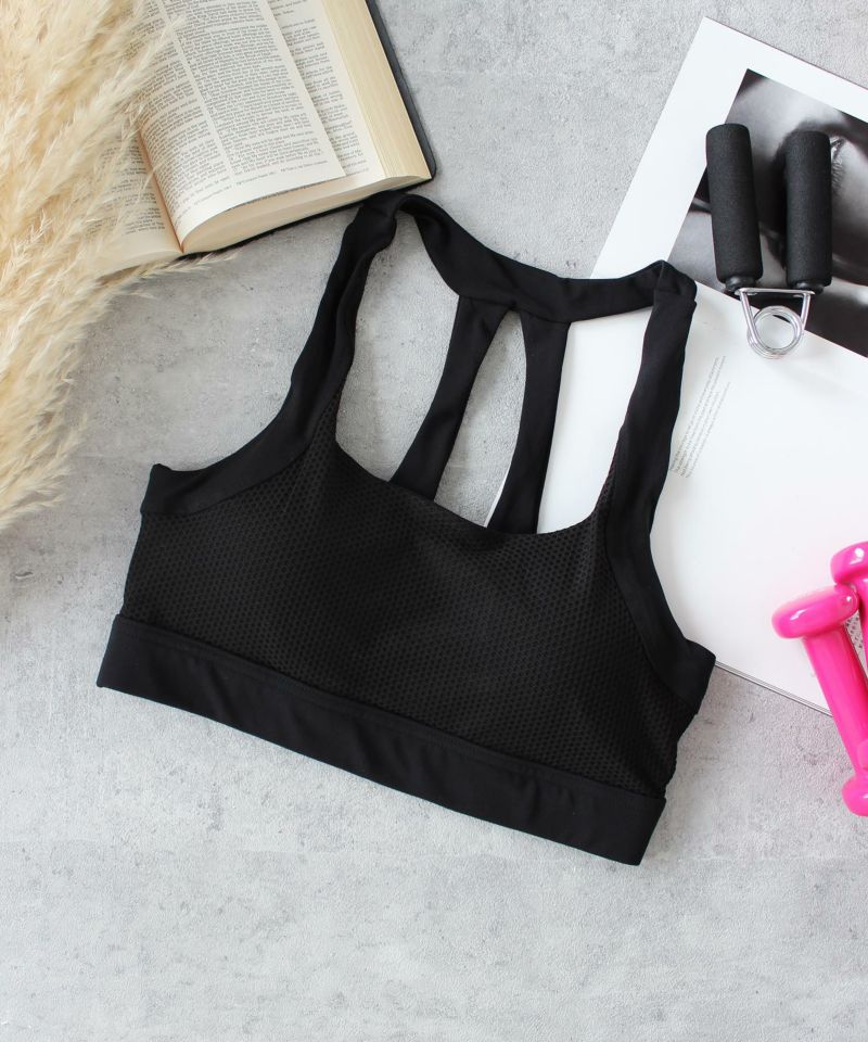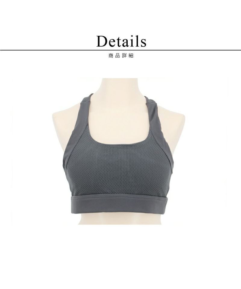 クロスデザインを加えたレーサーバックで、モードな肌魅せはもちろん、背中あきトップスとのレイヤードも楽しめます。