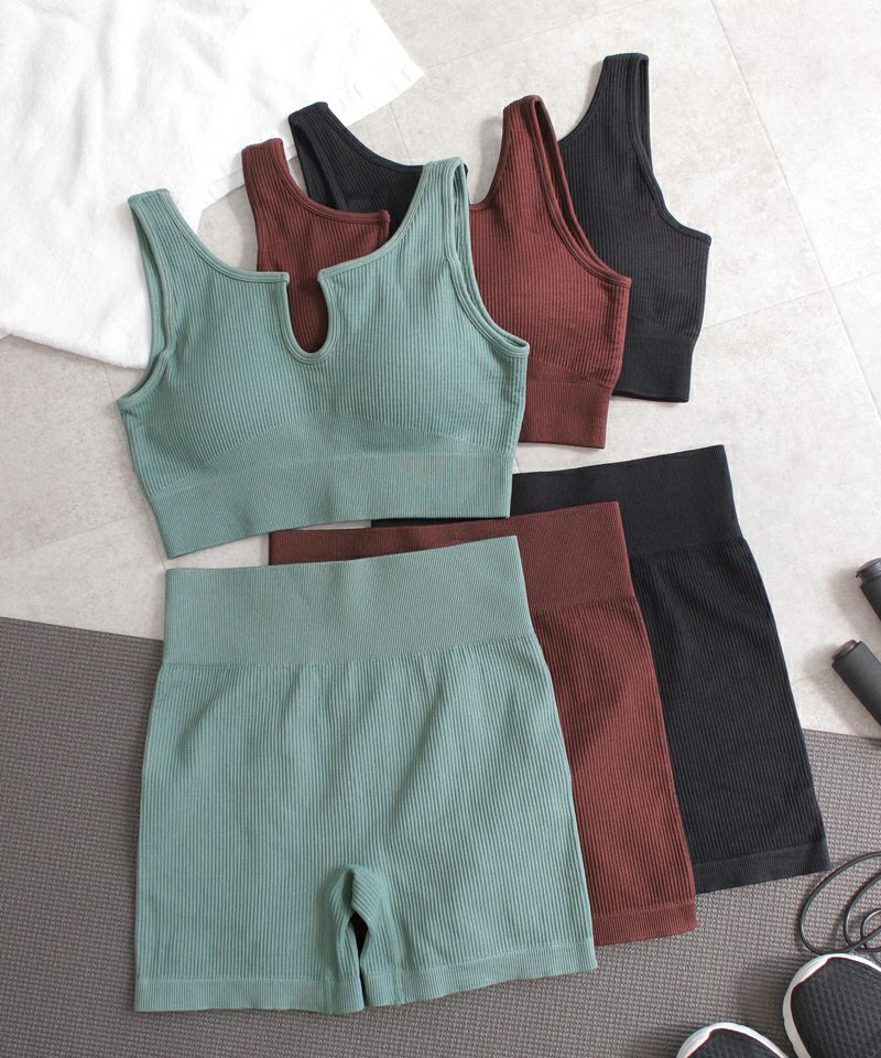 ◇ストラップ取り外し:不可 ◇ストラップ長さ調節:不可 ◇パッド:あり ◇パッド取り外し:可 ◇ワイヤー:なし ◇ホック: なし ◇タグ:印字 ◇透け感:なし ◇素材:ナイロン、エラスティン ◇ブラ+ショートパンツ / 計2点セット