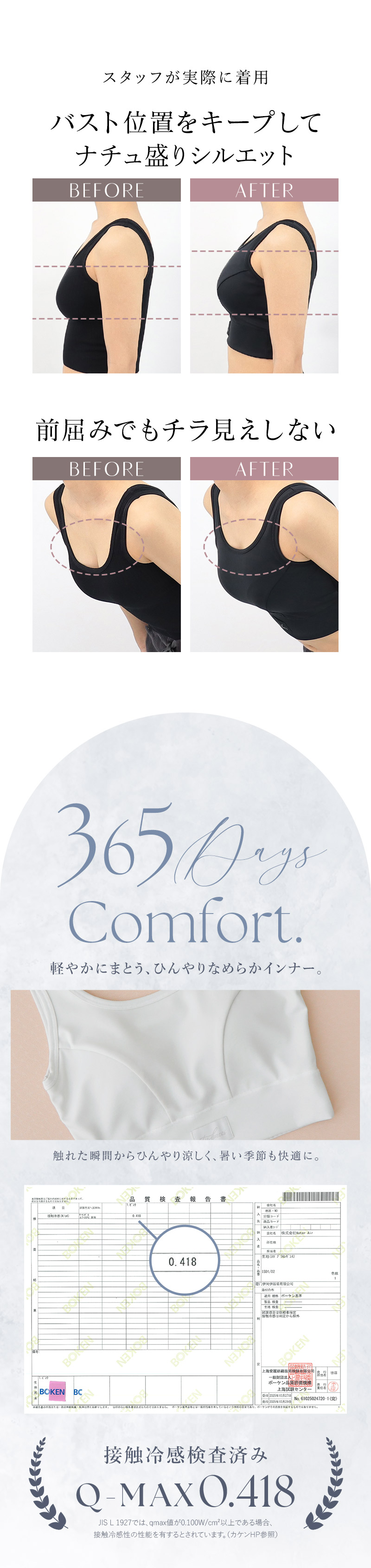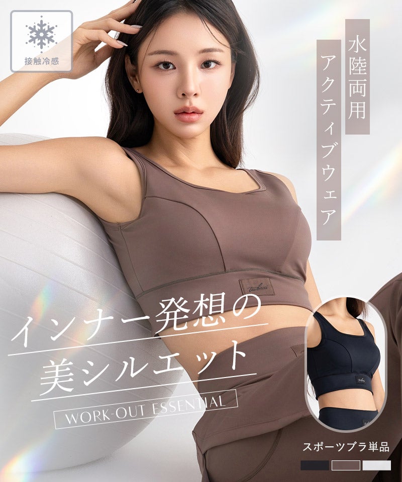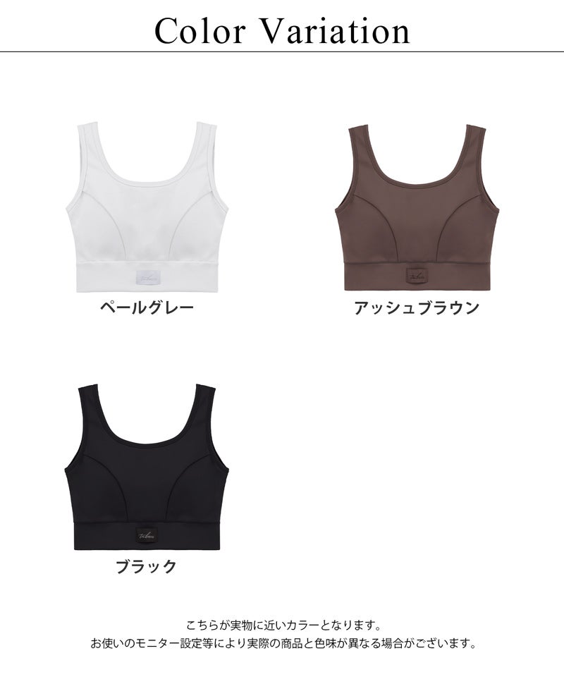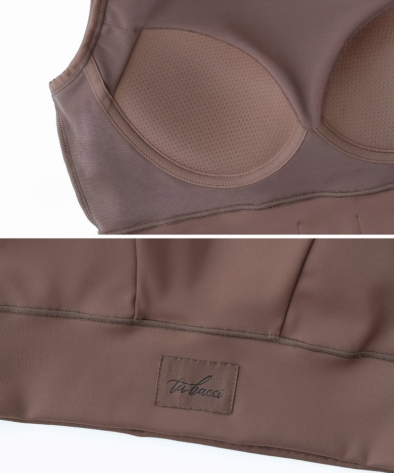 肩紐取り外し:不可 肩紐調節:不可 パッド:あり(取り外し不可) ワイヤー:なし ホック:なし 素材:ナイロン67%、ポリウレタン33%
