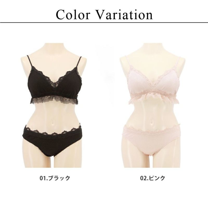 ノンワイヤー ミニョンレースリブブラレット&ショーツ