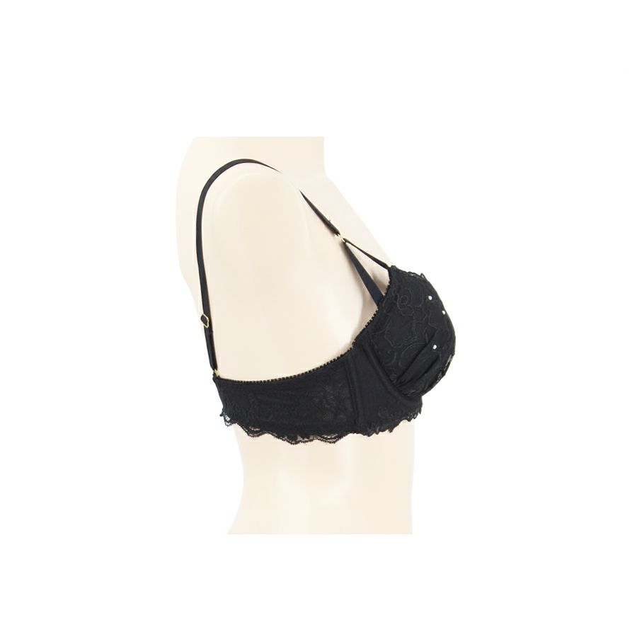深くカットされたカップのデザインが印象的でバストを美しく演出します。