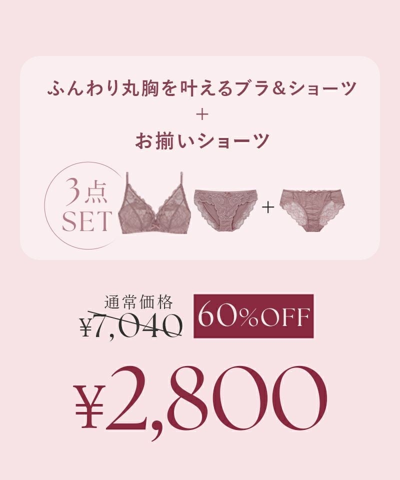 ストラップ取り外し:不可 ストラップ長さ調節:可 パッド:有(内蔵型) パッド取り外し:不可 ワイヤー:無 ホック:2段3列 素材:ナイロン・ポリウレタン ブラ&ショーツ+お揃いショーツ / 計3点セット