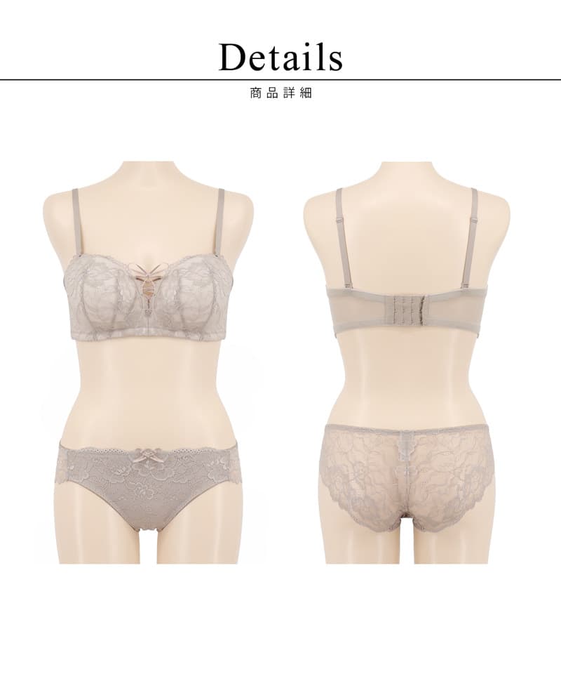 ストラップ取り外し:可 ストラップ長さ調節:可 パッド:あり(内蔵型) パッド取り外し:不可 ワイヤー:なし ホック(※A70/A75/B65/B70/B75/B80/C65/C70/C75/D65/D70/E65):3段4列 ホック(※C80/D75/D80/E70/E75/E80/F65/F70/F75):4段4列 ブラ透け感:なし ショーツ透け感(Aタイプ):無し ショーツ透け感(Bタイプ):バック有り 素材:ナイロン、ポリウレタン、その他 ブラ&ショーツ / 計2点セット