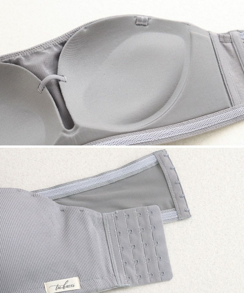付属品:ストラップ(1本) ストラップ取り外し:可 ストラップ長さ調節:可 パッド:あり(内蔵型) パッド取り外し:不可 ワイヤー:なし ホック:5段4列(サイド) 透け感:なし 素材:コットン、ポリウレタン、その他 モデル:165cm / D70 ブラジャー単品 ※キナリは若干の透け感があります。