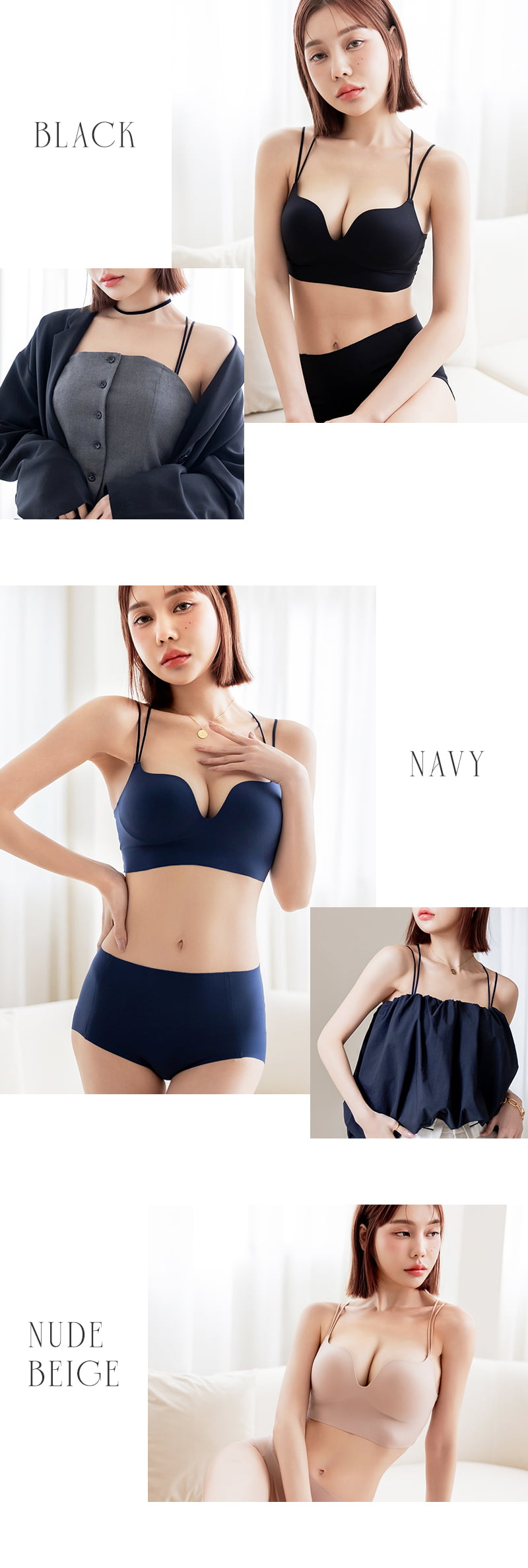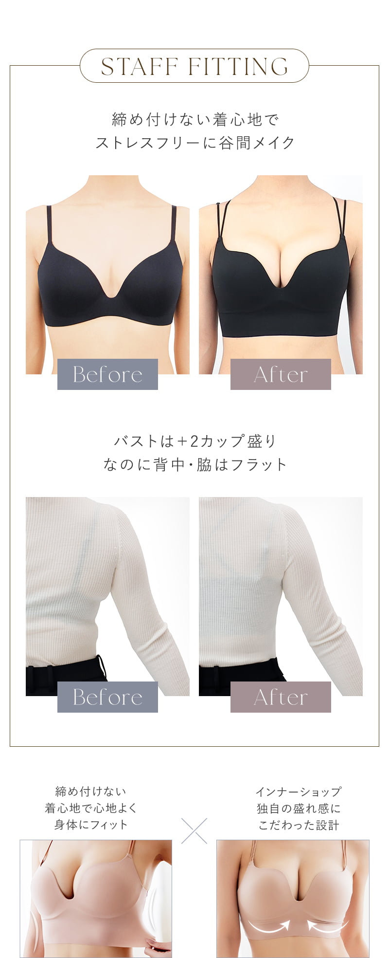 ストラップ取り外し:背面のみ取り外し可(3way仕様) ストラップ長さ調節:有り パッド取り外し:不可 ワイヤー:無し ホック:無し ブラ透け感:無し ショーツ透け感:無し 素材:ナイロン・ポリウレタン・その他
