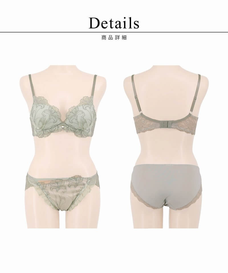ストラップ取り外し:不可 ストラップ長さ調節:有り カップの仕様:モールド 調整用パッド:無し ワイヤー:無し ホック(ALL):2段4列 ブラ透け感:無し ショーツ(Aタイプ)透け感:バック透け感有り ショーツ(Bタイプ)透け感:無し ショーツ(Cタイプ)透け感:バック透け感有り