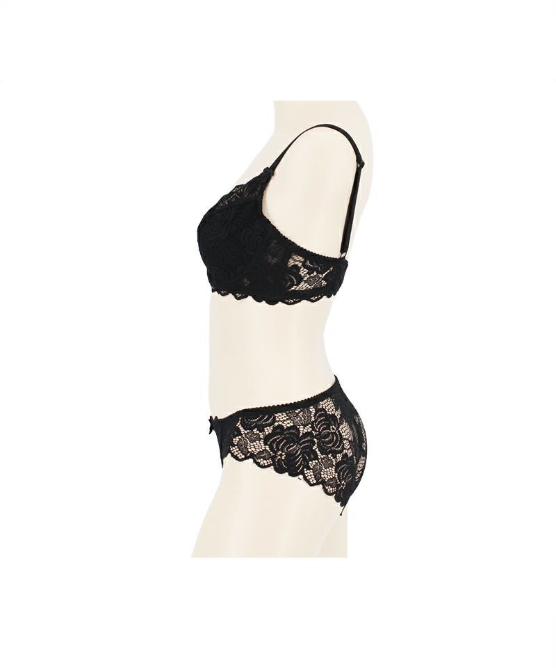 ストラップ取り外し:不可 ストラップ長さ調節:可 ワイヤー:有 パッド:無 ホック:2段3列 素材:ナイロン・スパンデックス・その他 ブラ透け感:若干あり ショーツ透け感:あり ブラ+ショーツ / 計2点セット