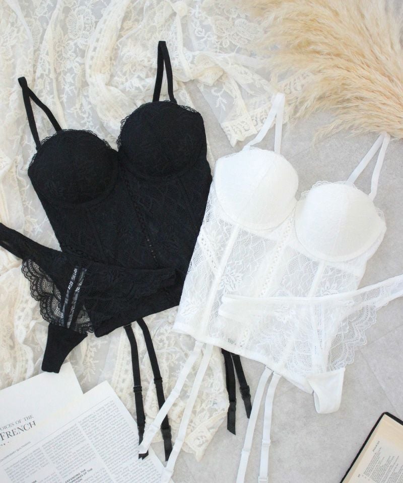 ストラップ取り外し:可 ストラップ長さ調節:可 ワイヤー:あり パッド:あり(内蔵型) ホック:10段2列 素材:ナイロン・スパンデックス・その他 ビスチェ透け感:若干あり ショーツ透け感:あり ビスチェ+ショーツ / 計2点セット