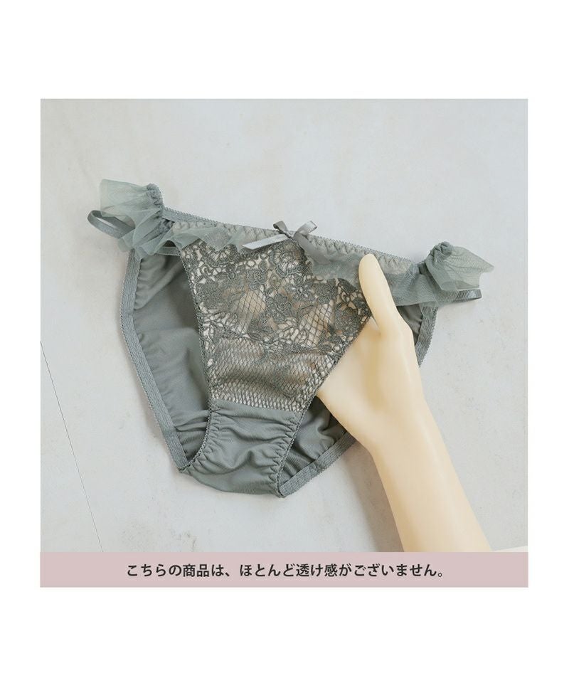 サイドストリングにふんわり被せたチュールで柔らかな女性らしさを演出。