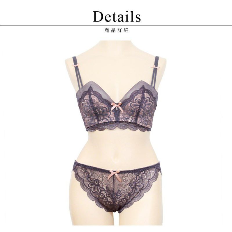 ノンワイヤー レイヤードレースアングルカップブラ&ショーツ