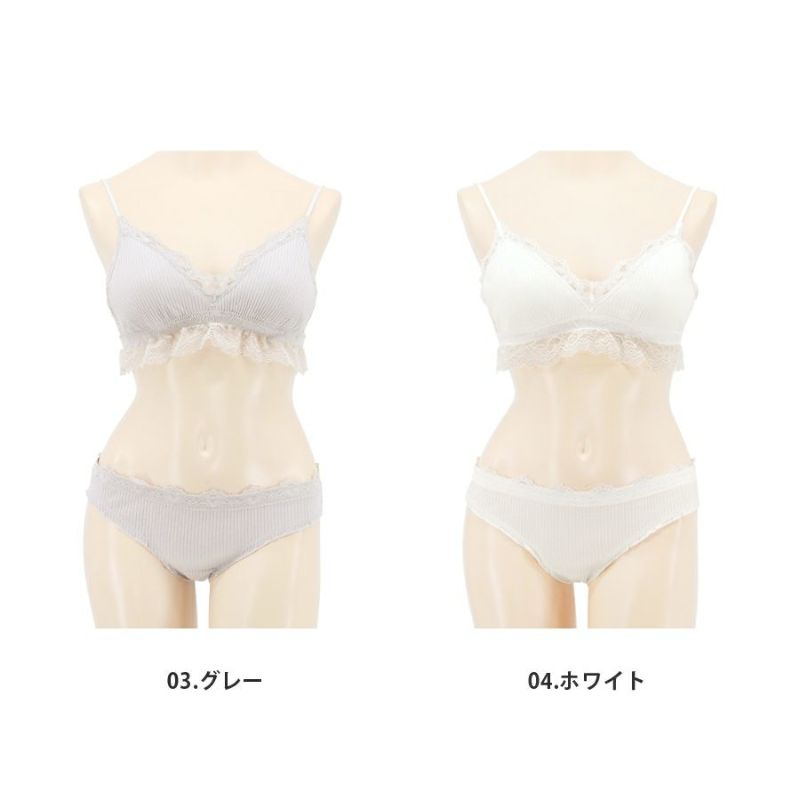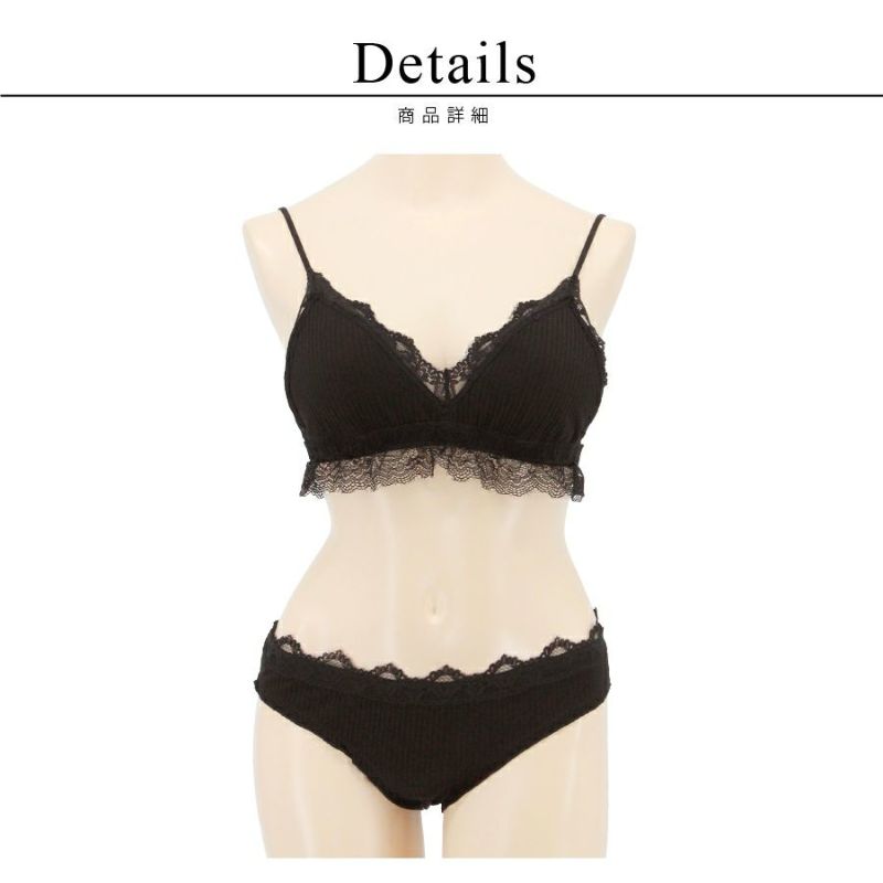 ノンワイヤー ミニョンレースリブブラレット&ショーツ