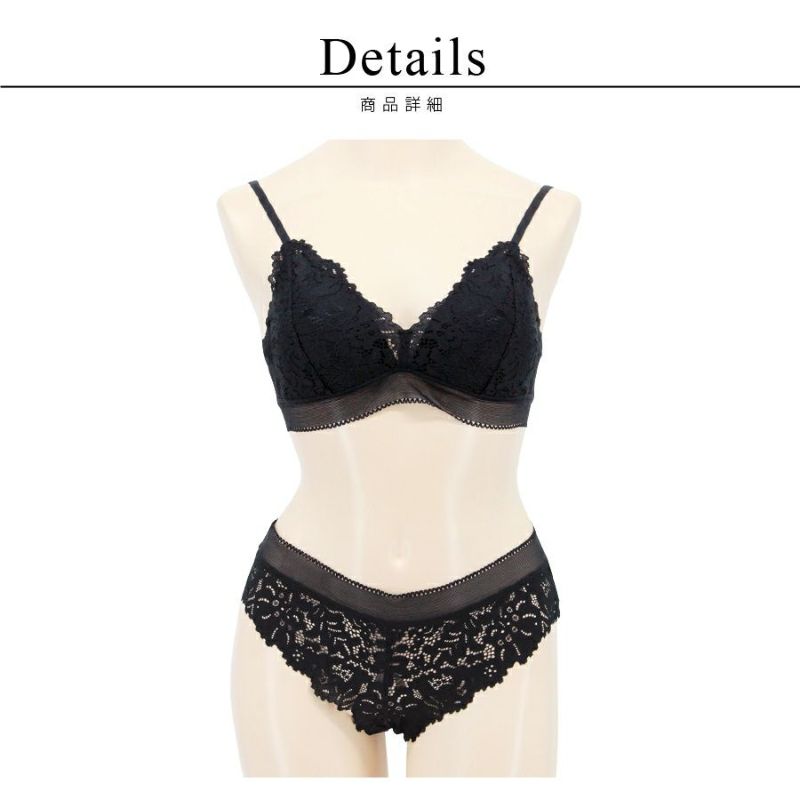 ストラップ取り外し:不可 ストラップ長さ調節:可 パッド:有 パッド取り外し:不可 ワイヤー:無 ホック: 2段4列 ブラ+ショーツ/計2点セット