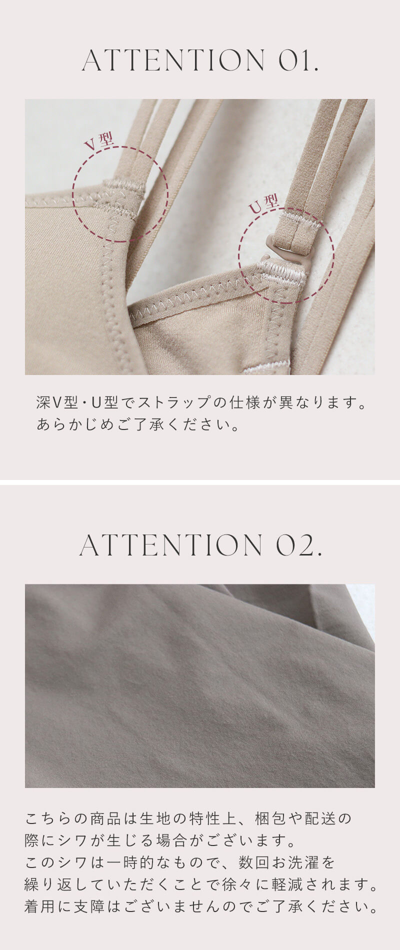 ・深V型は構造上、カップ下の生地がつっぱる場合がありますが、不良ではございませんので予めご了承下さい。
