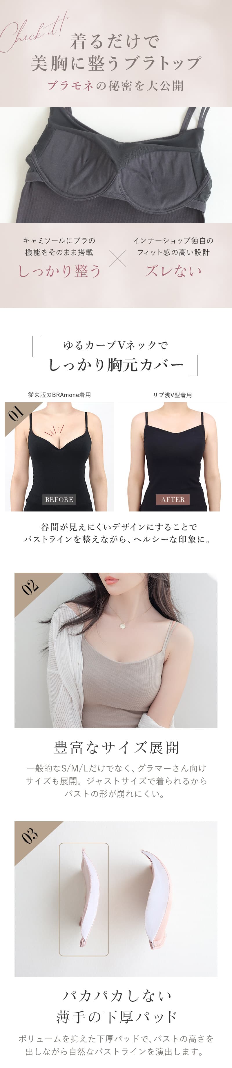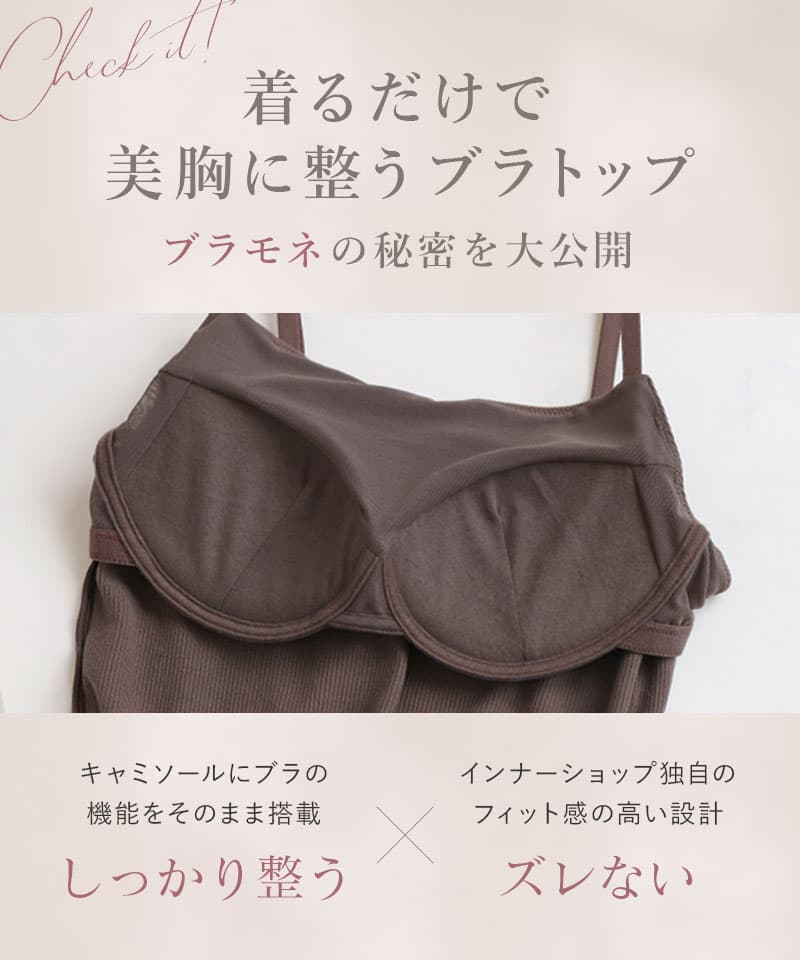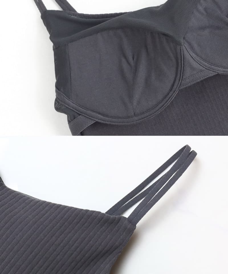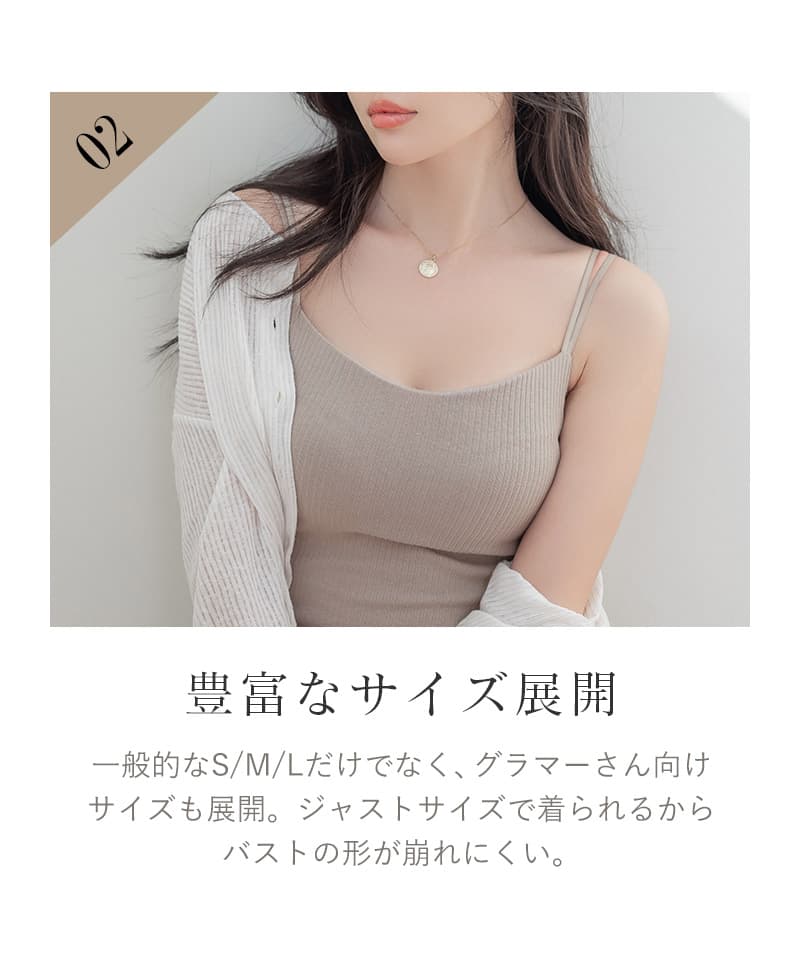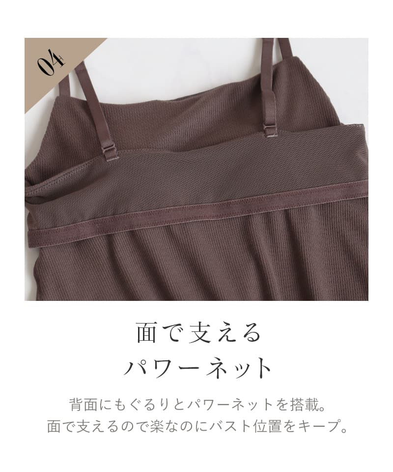 ストラップ取り外し:不可 ストラップ長さ調節:可 パッド取り外し:不可 ワイヤー:なし 素材:綿、ポリウレタン、その他 キャミソール単品