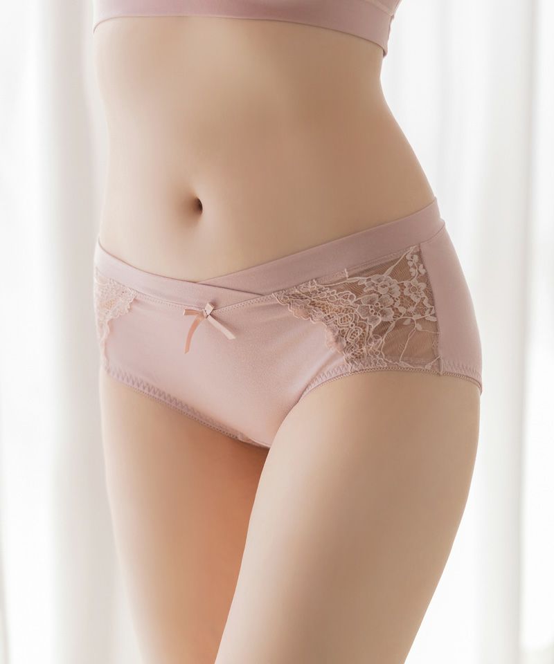 サイドに華やかなフラワーレースを施したフルバックショーツ。