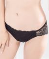 ヒップ部分は伸びの良いトリコット生地を使用し、レッグラインにはサイドから繋げるように幅広のレースを配置してリュクスな雰囲気を作りつつ食い込みを軽減。