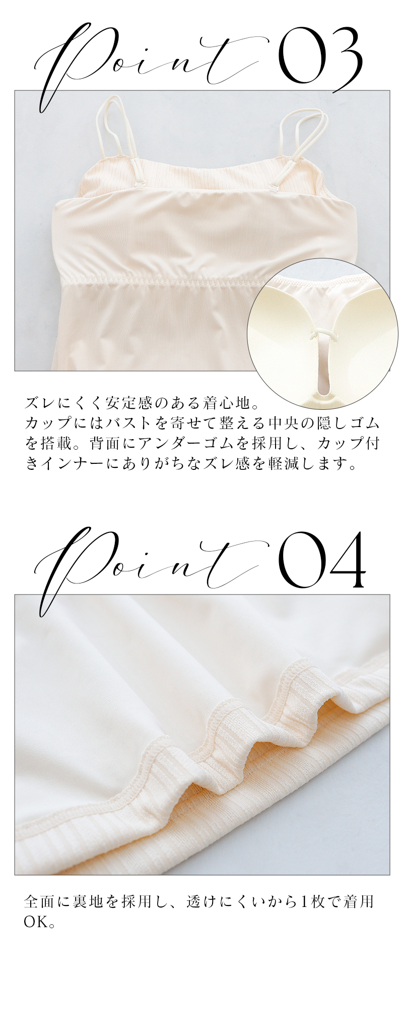 ストラップ取り外し:不可 ストラップ長さ調節:可 パッド取り外し:不可 ワイヤー:なし 素材:レーヨン ポリエステル その他 キャミソール単品