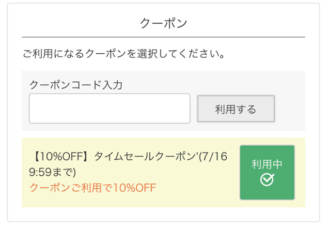 クーポンは必ず「利用中」の状態になっていることをご確認下さい。